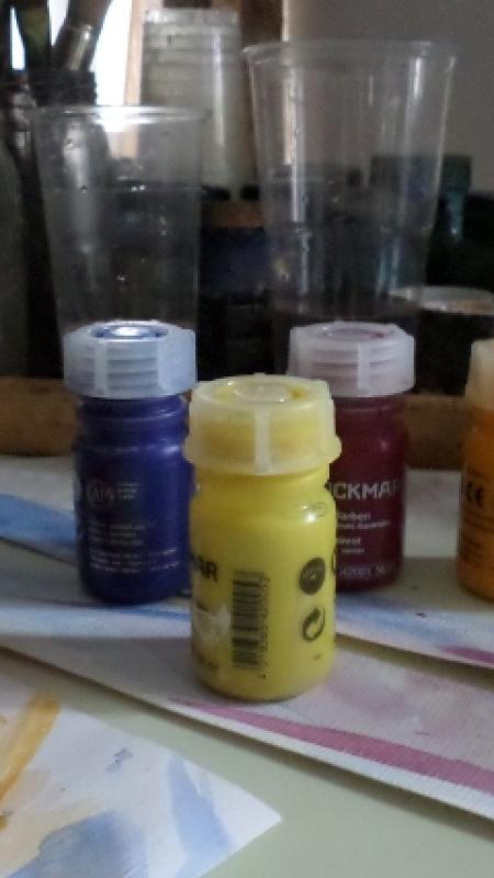 Watercolor by Stockmar and Windsor and Newton on paper using the veil painting method on dry paper or wet on wet method.